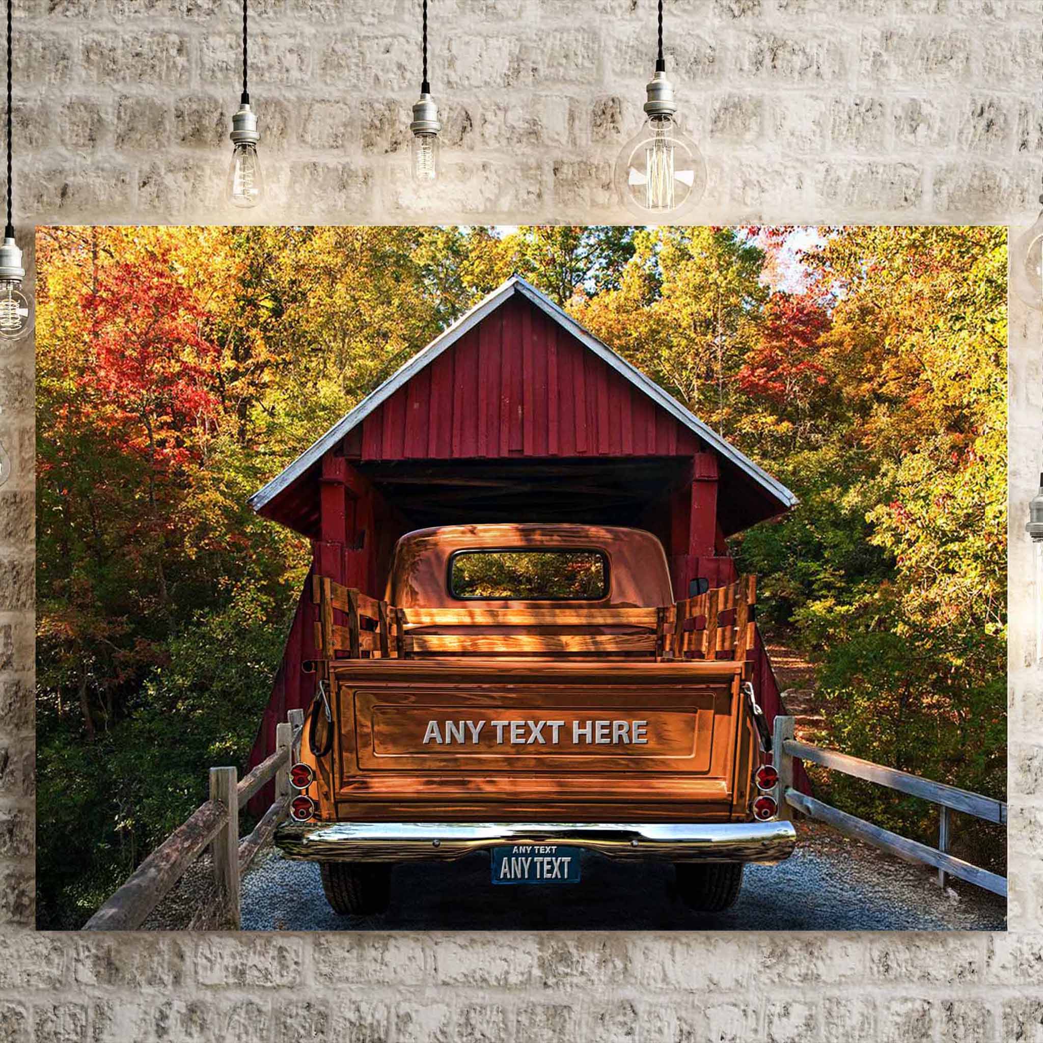 Personalized Green Covered Bridge Vintage Truck Canvas